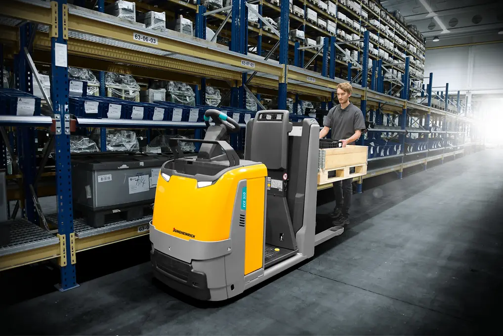 The reliable, powerful, and ergonomic ECE 310 and ECE 320 low-level order pickers are designed for safe, efficient, and back-friendly order picking in demanding warehouse environments. The liftable load section allows goods to be handled at an optimal working height, while the ECE 320 additionally features a scissor-lift load section for transporting two pallets, making it ideal for higher picking volumes. Both models combine high picking performance with low energy consumption, supporting efficient operation throughout every shift.