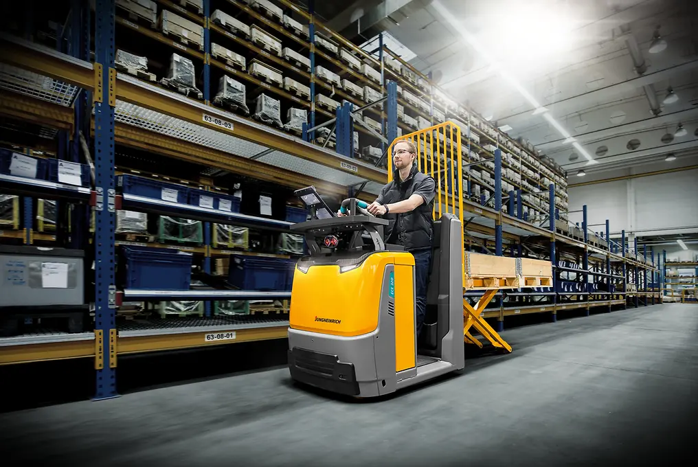 Dynamic acceleration, safe cornering, and high travel speeds ensure fast and precise picking cycles. A range of performance packages and configuration options provides flexibility to match specific operational requirements. The award-winning jetPILOT multifunction steering wheel enables intuitive handling, precise control, and seamless switching between driving modes, while reducing strain on the operator. An individually adjustable workstation offers excellent visibility and easy access to all operating elements. For high-performance applications, semi-automatic control via a wireless operating unit on the ECE 320 further optimizes picking processes by eliminating unnecessary travel.