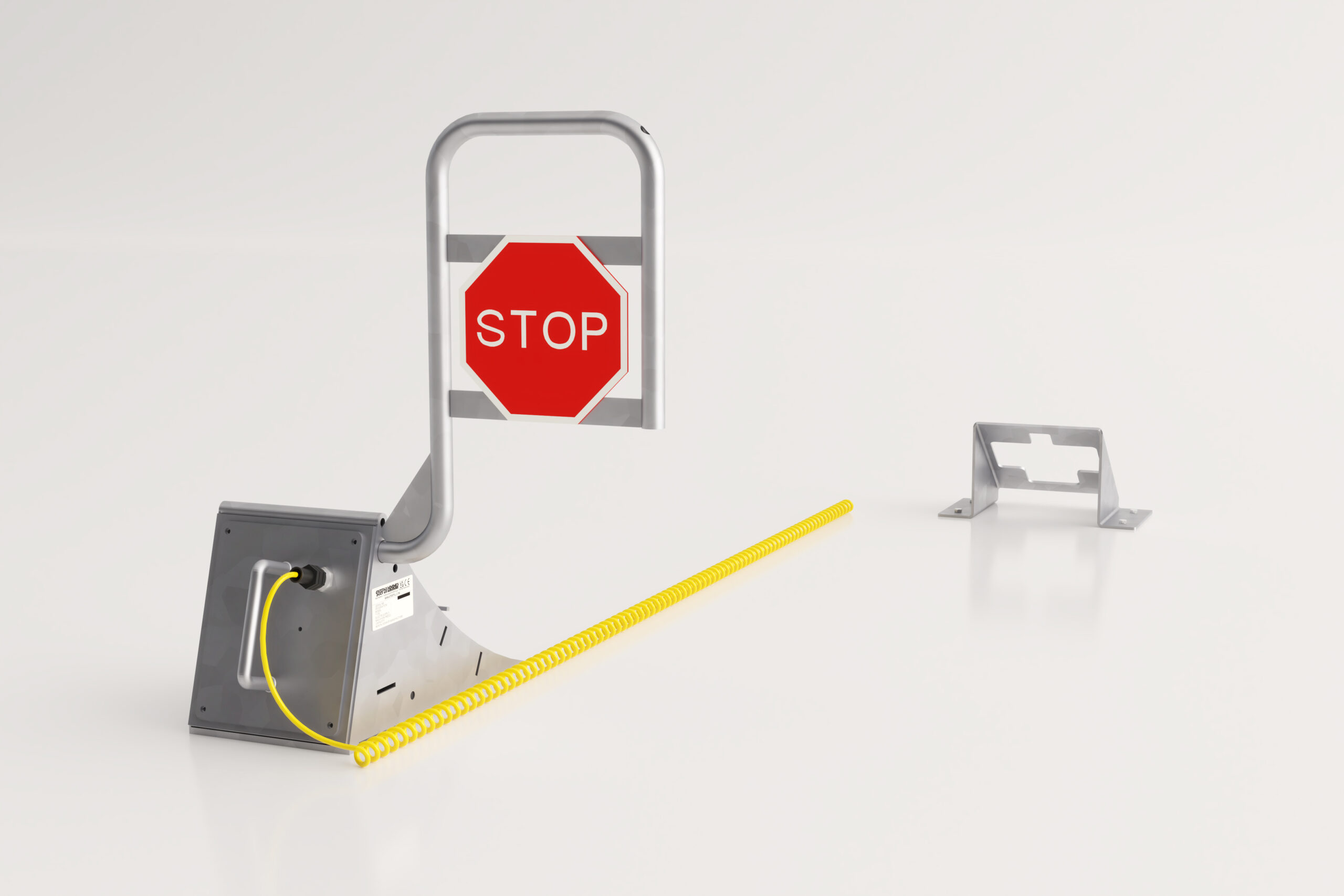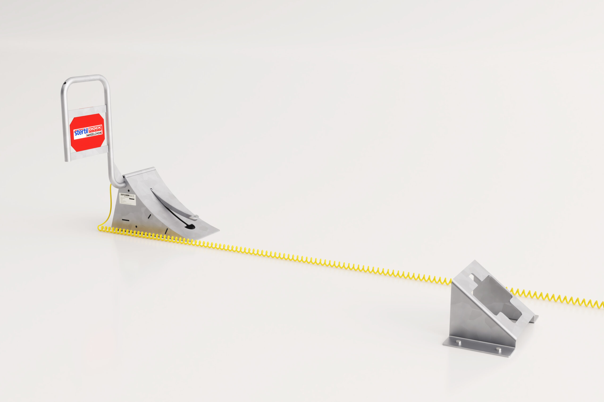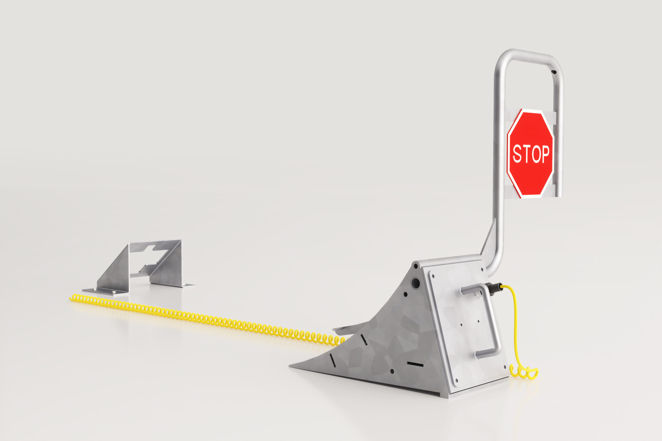 An easy-to-install and operate electric wheel chock system that significantly increases safety during loading and unloading. The WHEELCHOK prevents dangerous vehicle roll and incidental movement. The complete system includes an external traffic light for clear communication and a central control box for safe and simple operation.