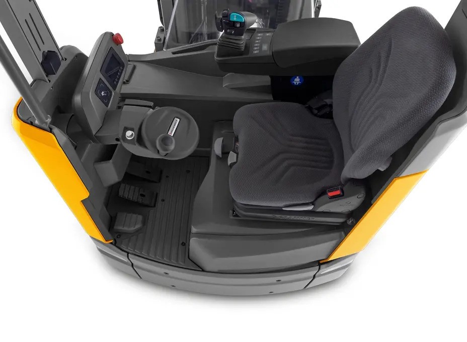 The agile and innovative ETV 214i / 216i reach trucks are the ideal helpers for efficient storing and removal at heights of up to 10.7 m or for the provision of pallets for order picking. Thanks to their innovative design, they not only impress with improved safety and ergonomics, but also with maximum ride comfort. The powerful lithium-ion battery is extremely compact and facilitates flexible use thanks to its rapid and booster charging capability. A generously designed workplace with low entry step, plenty of space for the operator and optimum all-round visibility enables healthy working. Smart assistance systems and a wide range of additional options such as a panorama glass roof, positioning laser or the integrated SmartStripe LED light strip ensure maximum protection in the warehouse.